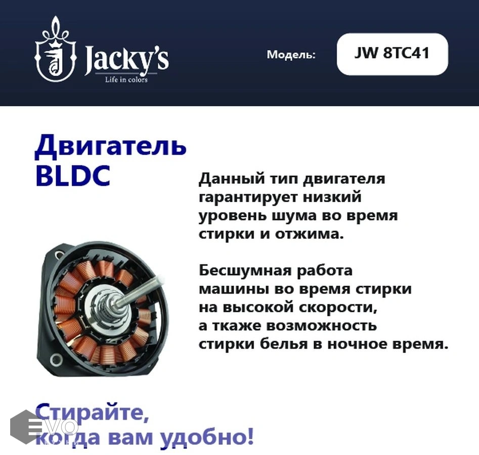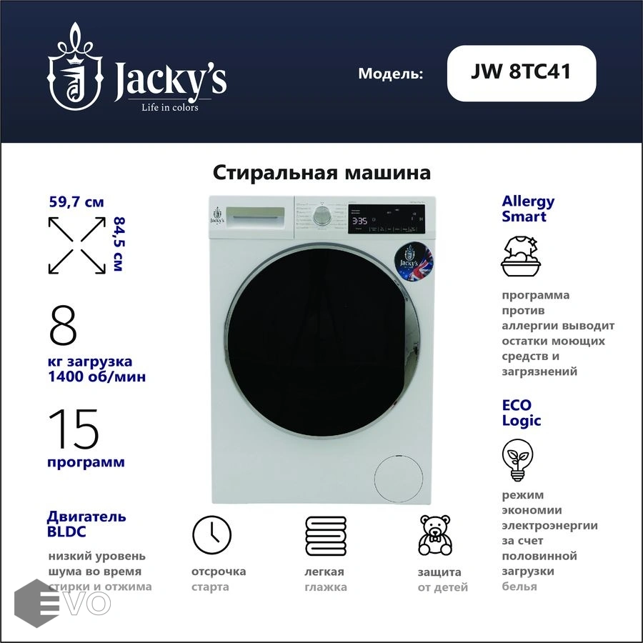 Стиральная машина Jacky's JW 8TC41 с загрузкой белья на 8 кг с бесшумным инверторным двигателем и защитой от детей станет идеальной покупкой для больших семей.