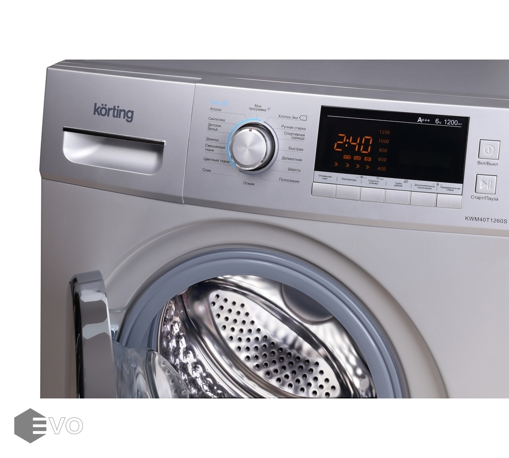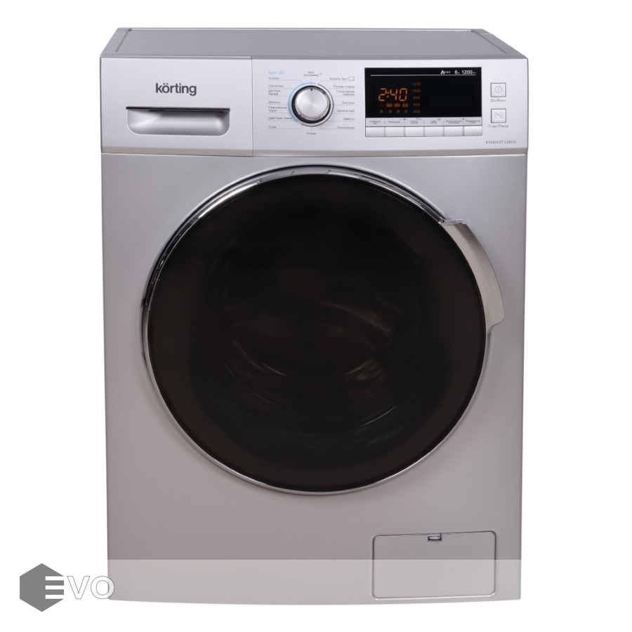 Стиральная машина Korting KWM 40 T 1260 S — это отдельно стоящая узкая модель серебристого цвета с фронтальным типом загрузки. Барабан из нержавеющей стали вмещает в себя до 6 кг белья. Управление осуществляется при помощи поворотного переключателя, кнопок и цифрового дисплея. Всего насчитывается 16 программ стирки, среди которых «детские вещи», «смешанные ткани» и функция «моя программа».