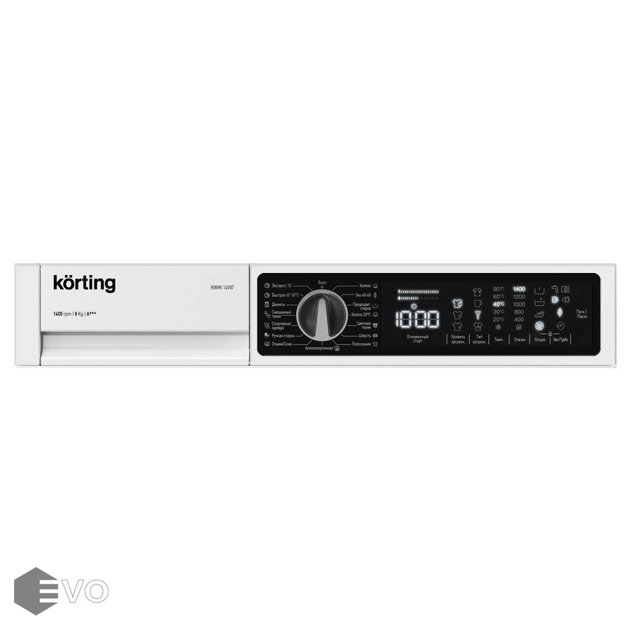 Стиральная машина Korting за счет специальной формы барабана способна вместить в себя за один цикл стирки 8 килограмм белья. Теперь не придется думать, как постирать несколько комплектов спального белья или большие махровые халаты. Кроме этого вы можете стирать гораздо реже и экономить на воде и электроэнергии.