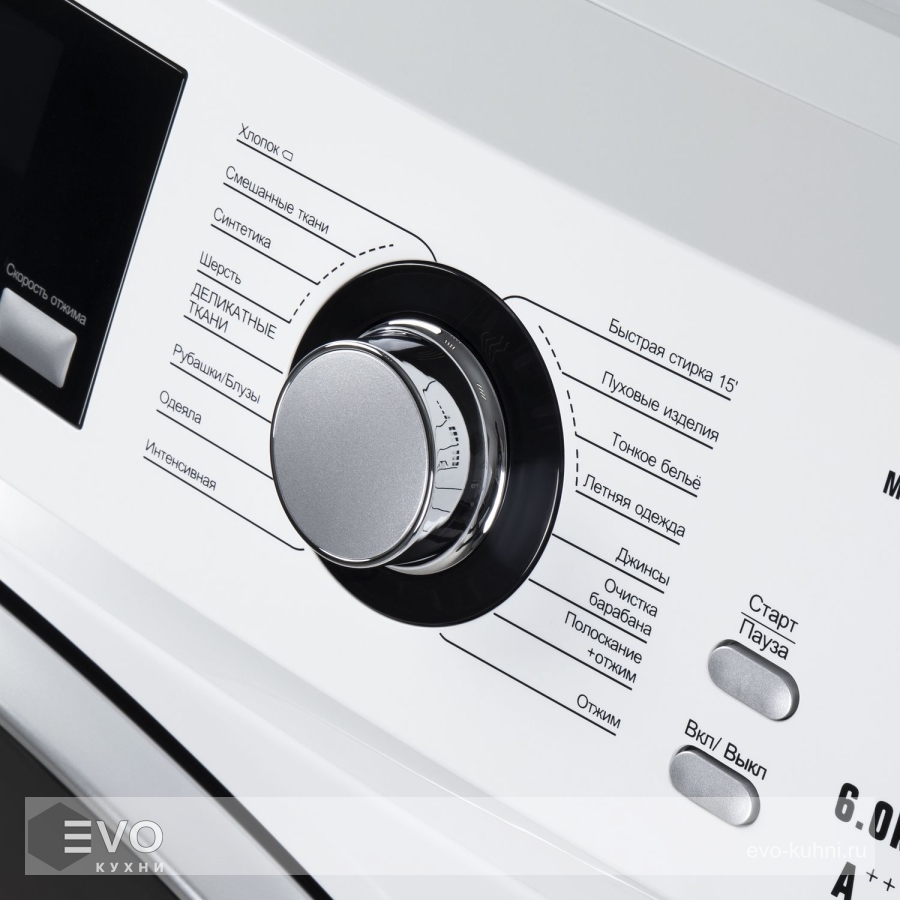 Предусмотрены следующие дополнительные функции: предварительная стирка, дополнительное полоскание, отключение звукового сопровождения, отложенный старт (0-24 часа), «Мой цикл» (запоминание часто используемых настроек), блокировку от детей.