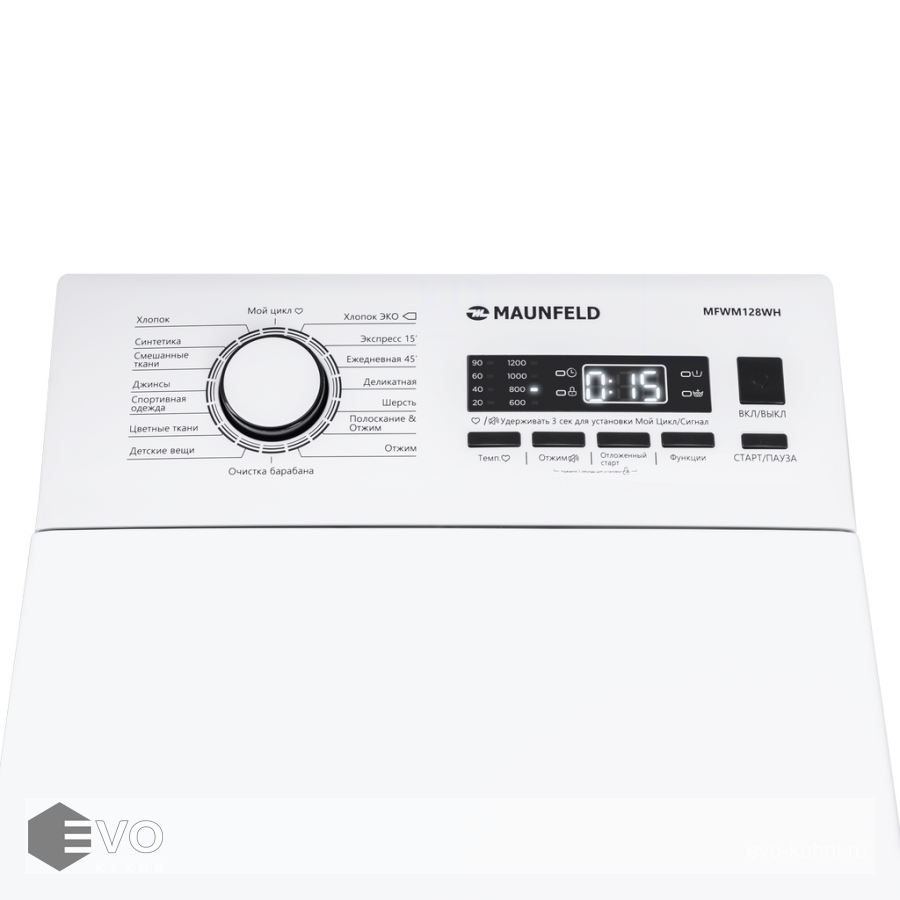 Стиральная машина MAUNFELD MFWM128WH – отдельностоящая стиральная машина с вертикальной загрузкой мощностью 2100 Вт и шириной 40 см. Автобалансировка загрузки гарантирует низкий уровень шума при отжиме даже на самых высоких оборотах. Максимальная скорость отжима 1200 об/мин. Выбор температуры стирки – от 20° до 90°. Чем ниже температура стирки, тем меньшее воздействие оказывается на ткань (структуру, рисунок).
