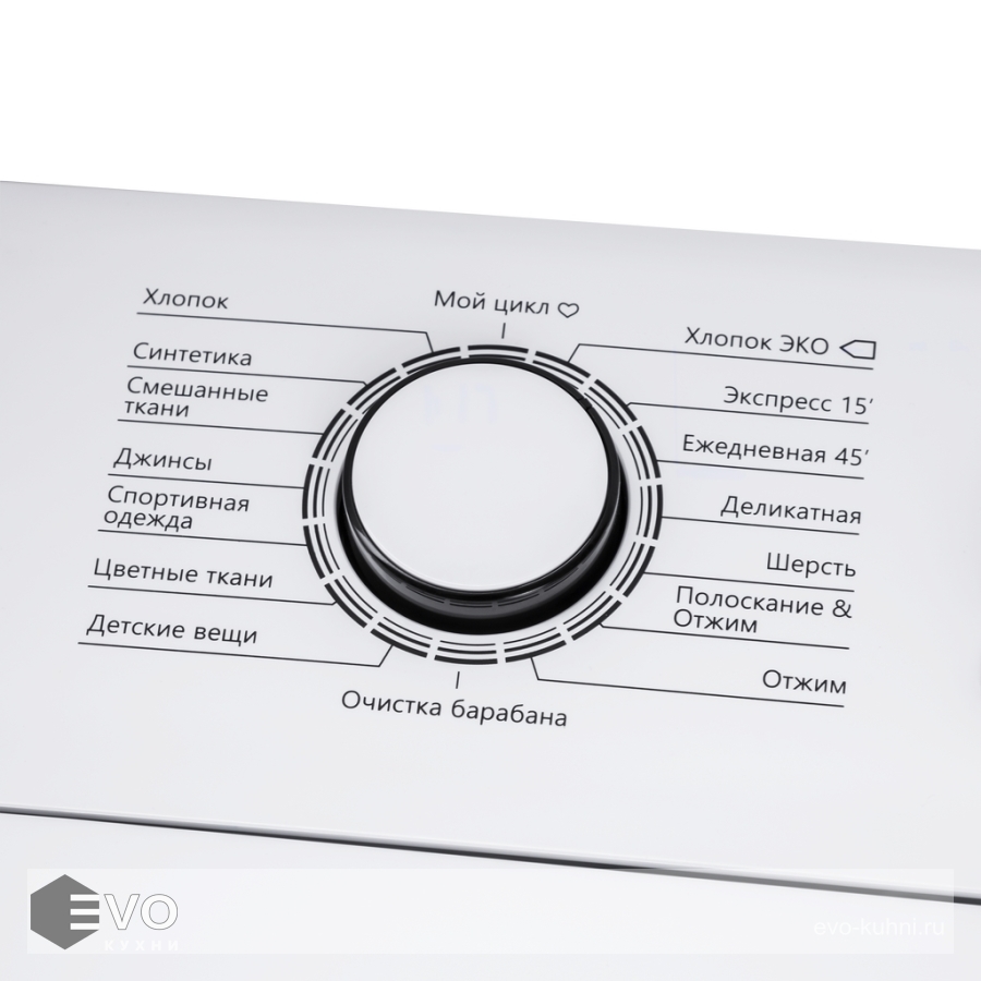 Электронное управление с LCD дисплеем позволяет с легкостью включить один из 16 режимов стирки: хлопок, хлопок 40°, хлопок 60°, шерсть, деликатная, цветные ткани, полоскание и отжим, детские вещи, спортивная одежда, джинсы, смешанные ткани, синтетика, экспресс 15”, ежедневная 45”, очистка барабана, предварительная стирка, дополнительное полоскание, отключение звукового сопровождения, отложенный старт (0-24 часа), блокировку от детей.