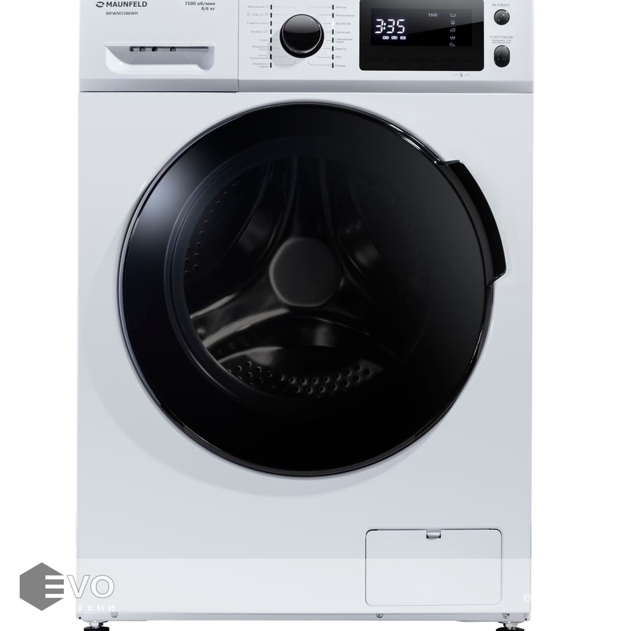 Стиральная машина MAUNFELD MFWM1586WH – отдельностоящая стиральная машина с инверторным мотором мощностью 1900 Вт. Белый цвет корпуса идеально сочетается с черным тонированным стеклом загрузочного люка и дисплея. Бак сделан из экокарбона, а барабан – из нержавеющей стали.