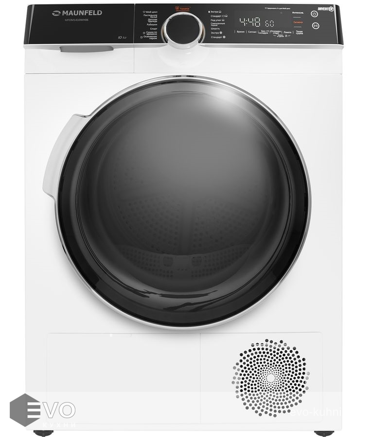 Сушильная машина Maunfeld MFDM1410WH06 — это вместительная и стильная модель с загрузкой 10 кг. Эргономичная панель управления удобна при настройке и интуитивно понятна.