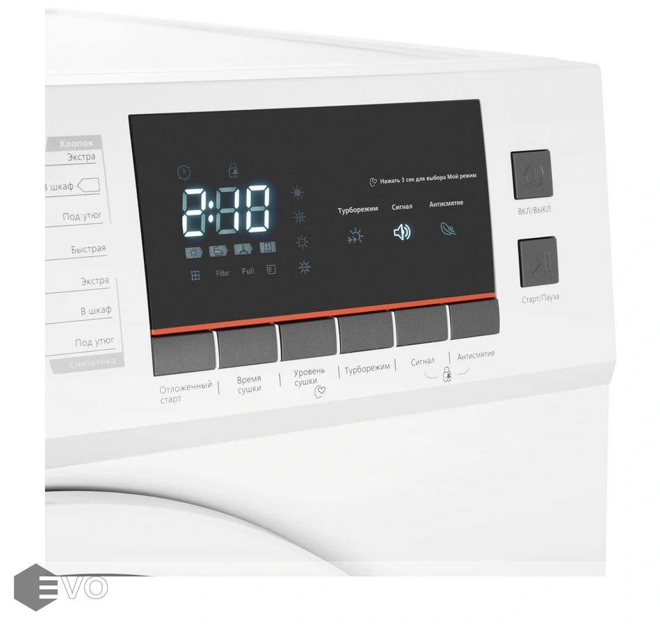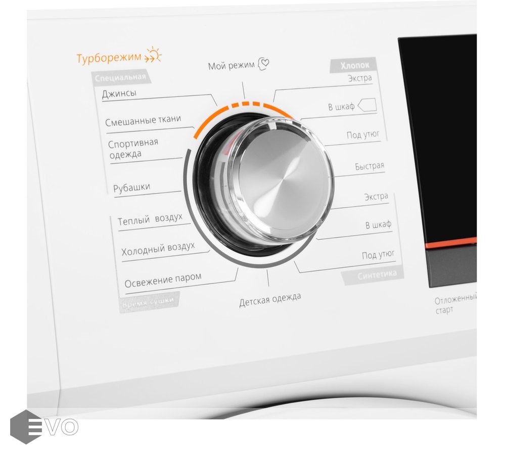 Режим турбо поможет вам сократить продолжительность выбранной программы без потери качества сушки, за счет того, что машина понемногу сокращает время каждого из циклов, не исключая их полностью.