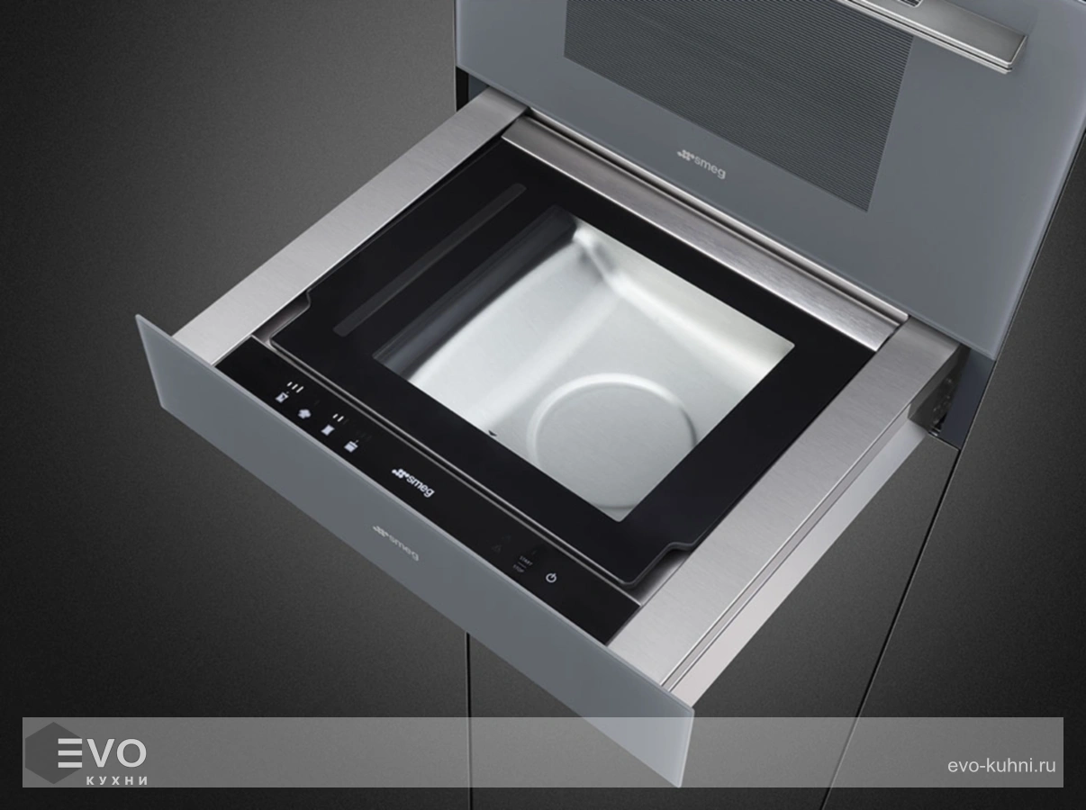 Вакууматор Smeg CPV115S – с помощью вакуумного упаковщика можно герметично закрывать пакеты, ваккумировать продукты в специальных контейнерах, подготовить ингредиенты для су-вид. Двухфазное запаивание обеспечивает прочность шва. Пища может быть упакована в вакуумную упаковку, даже небольшими порциями, и при необходимости готова к употреблению. Можно будет упаковывать как твердые, так и жидкие продукты в вакуумную упаковку.