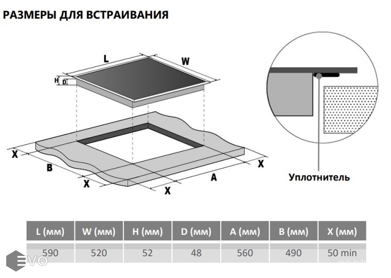 Размеры встраивания (ВхШхГ), мм: | 48х560х490 |