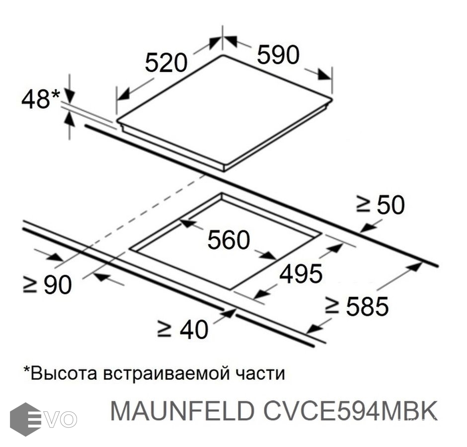 Размеры встраивания (ВхШхГ), мм: | 50х560х495 |