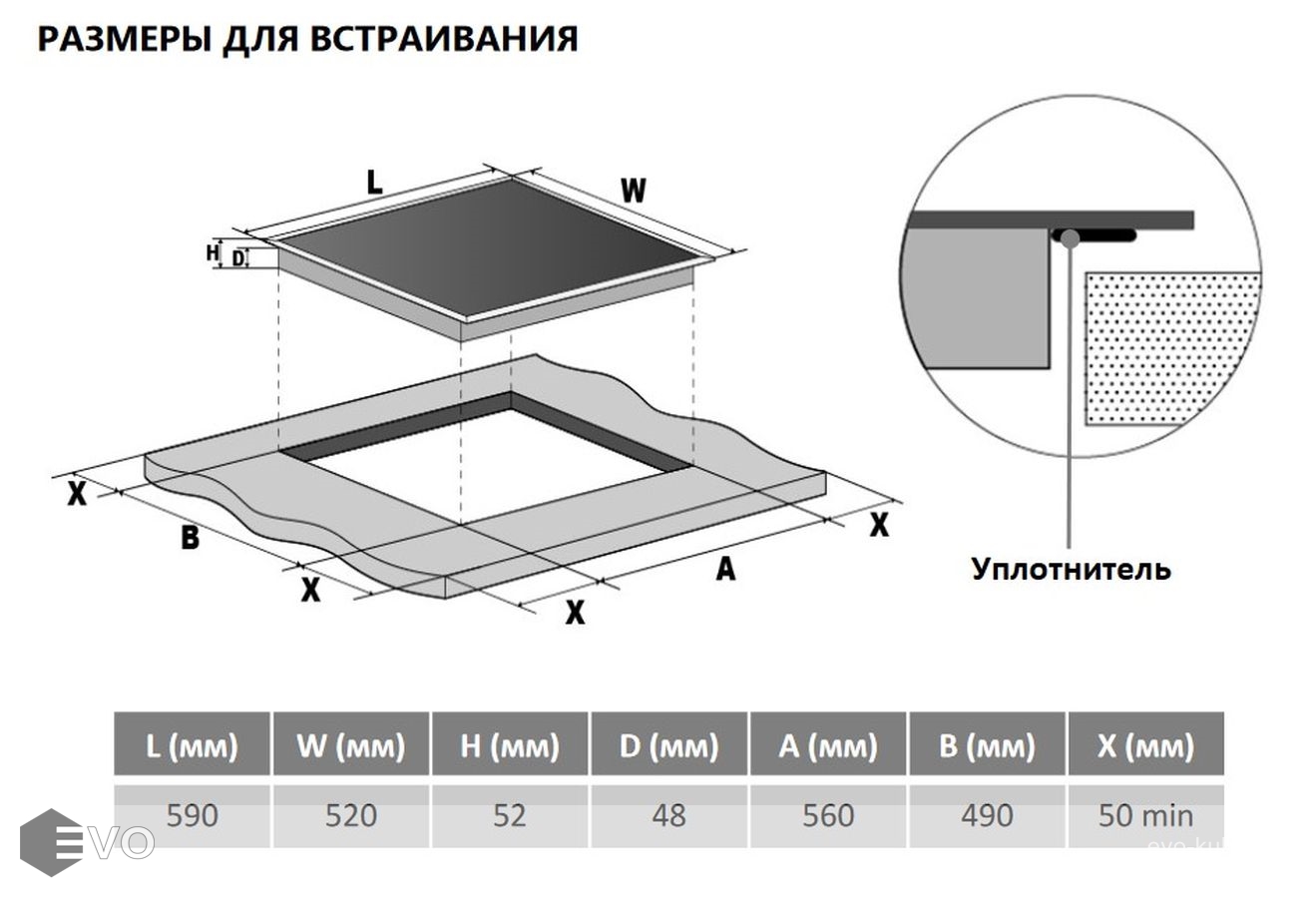 Размеры встраивания (ВхШхГ), мм: | 30х560х490 |