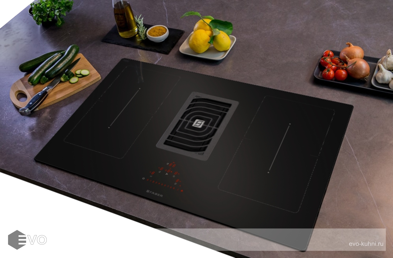 Индукционная варочная поверхность FABER GALILEO SMART BK GLASS A830 — технология индукционного нагрева основана на воздействии электромагнитного поля на дно посуды, она позволяет точно регулировать температуру приготовления по 9 ступеням. Варочная панель оснащена встроенной по центру вытяжкой.