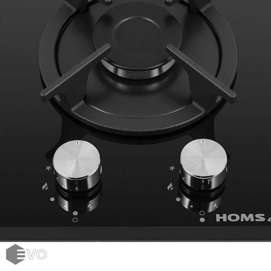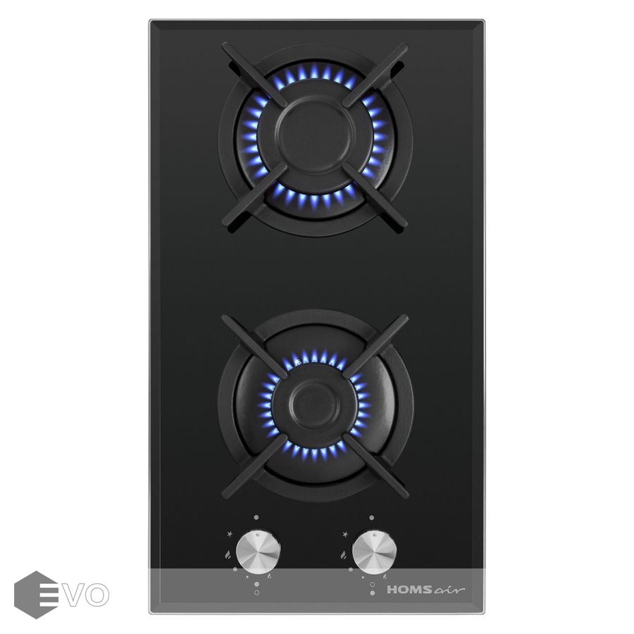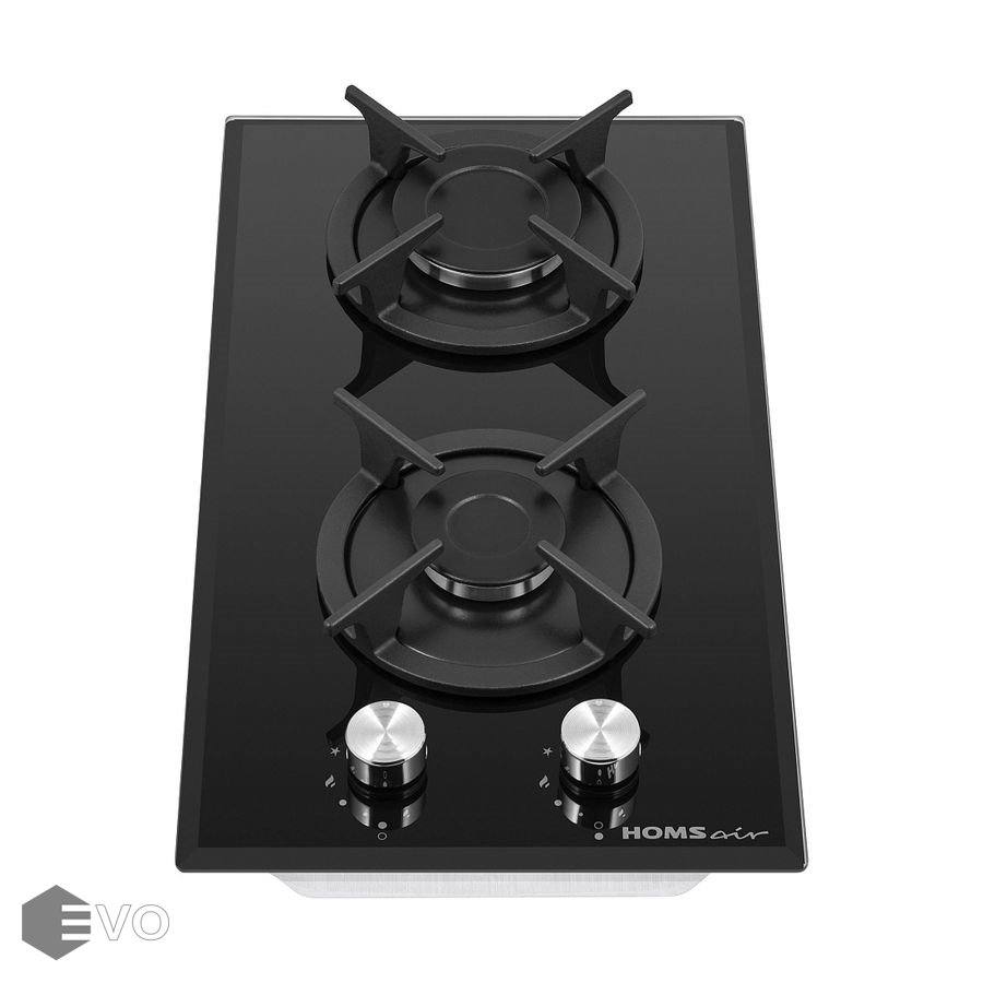 Газовая варочная панель HOMSair HGG321BK - компактная варочная поверхность с пластиковыми ручками управления, выполненная из закаленного стекла. Оснащена 2-мя конфорками ALBEK с матовыми крышками, мощностью 2600, 1700 Вт, и 2-мя круглыми чугунными решетками. Может работать как от магистрального газа, так и газа в баллоне.