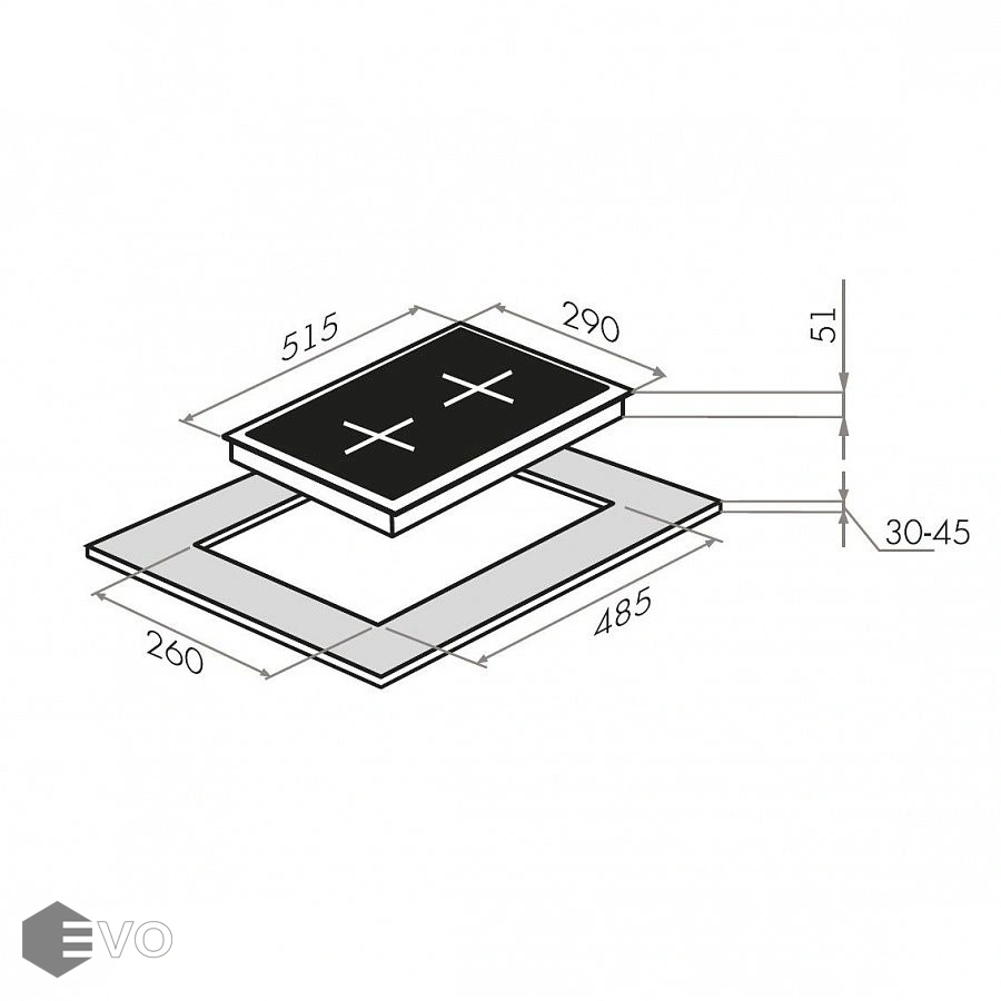 | Размеры встраивания (ВхШхГ), мм: | 30х260х485 |