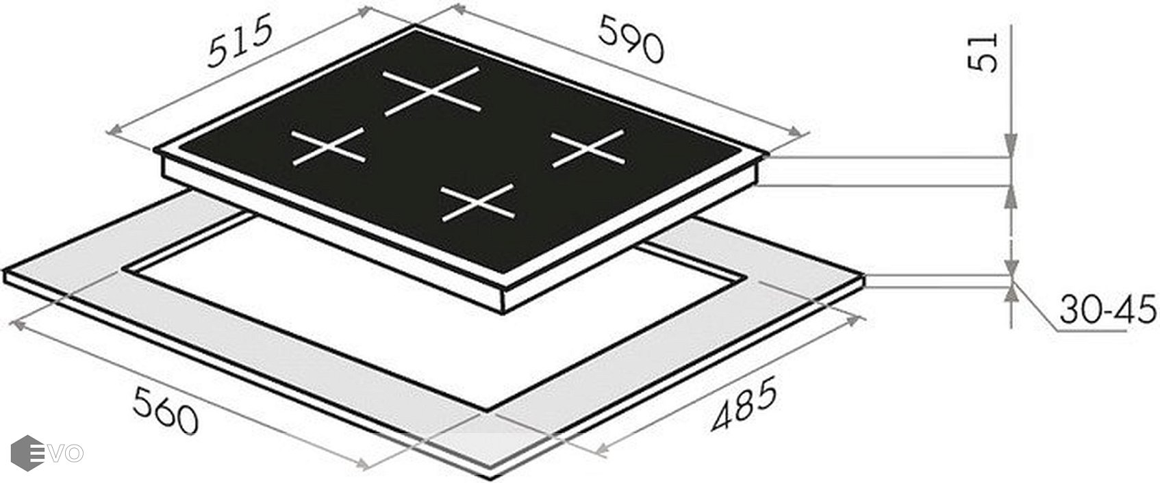 Размеры встраивания (ВхШхГ), мм: 30х560х490