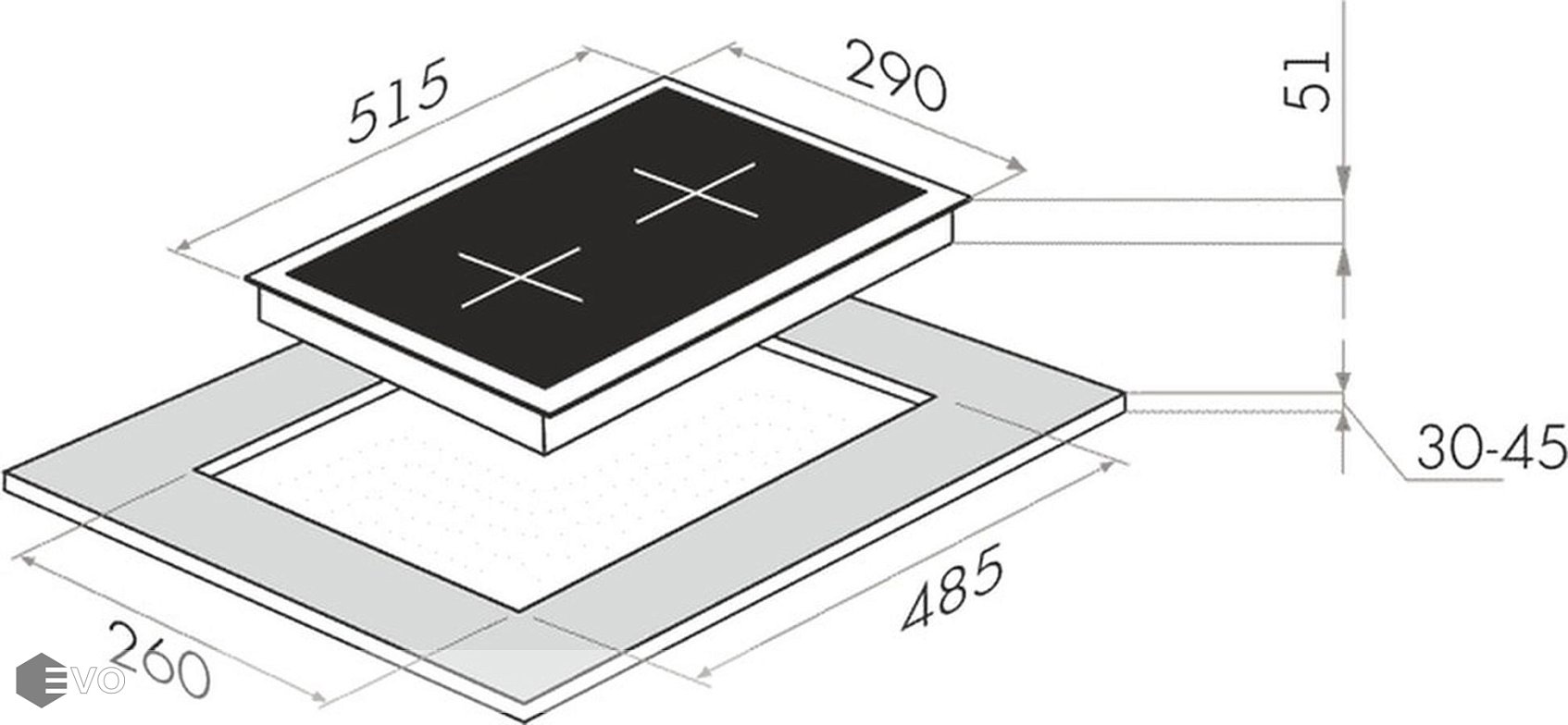 Размеры встраивания (ВхШхГ), мм: | 30х260х485 |