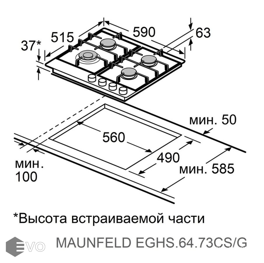 | Размеры встраивания (ВхШхГ), мм: | 100х590х515 мм |