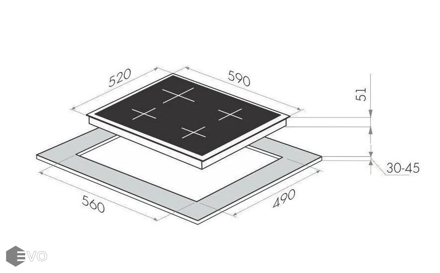 Размеры встраивания (ВхШхГ), мм: | 30х560х490 |