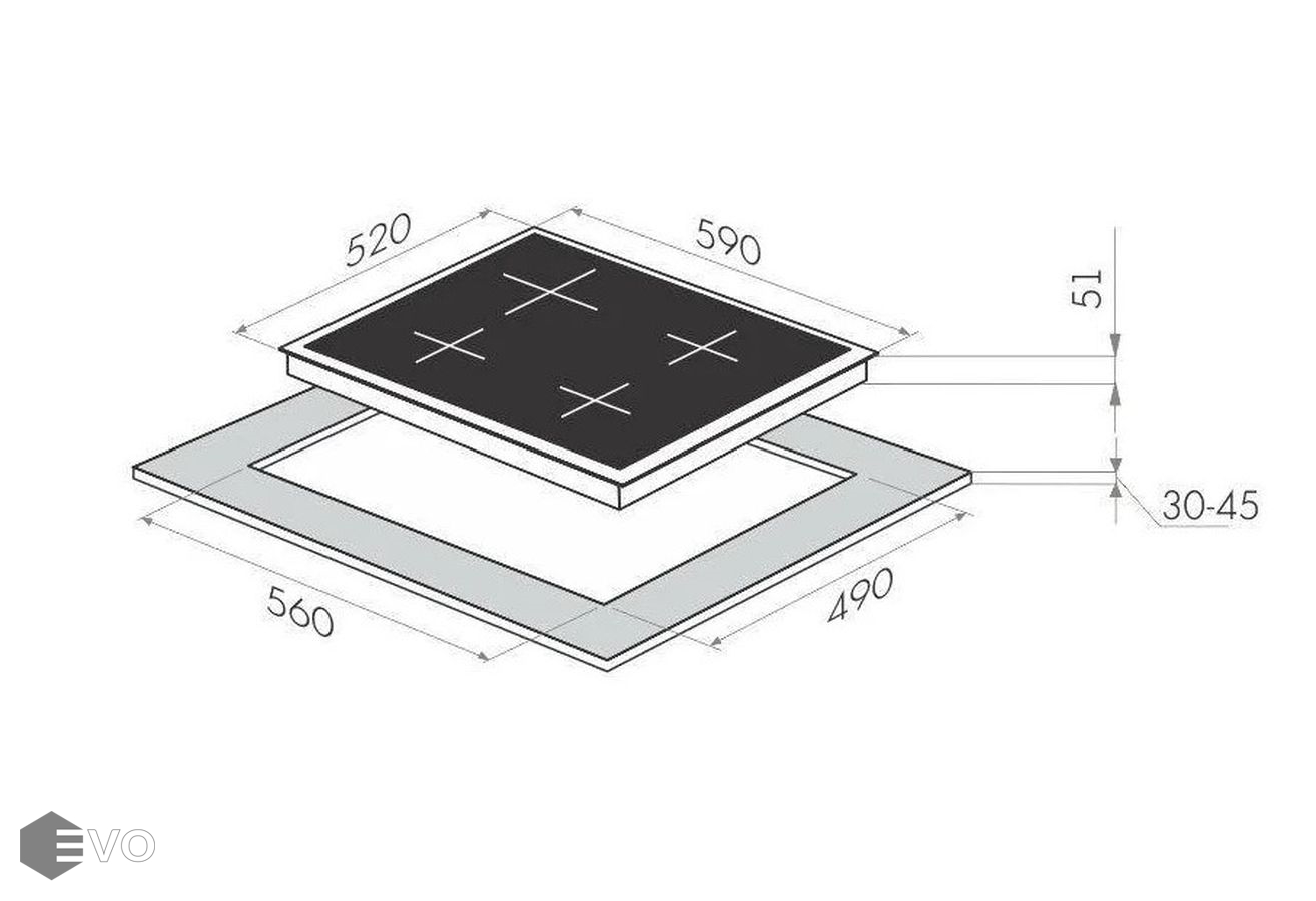 Размеры встраивания (ВхШхГ), мм: 30х560х490