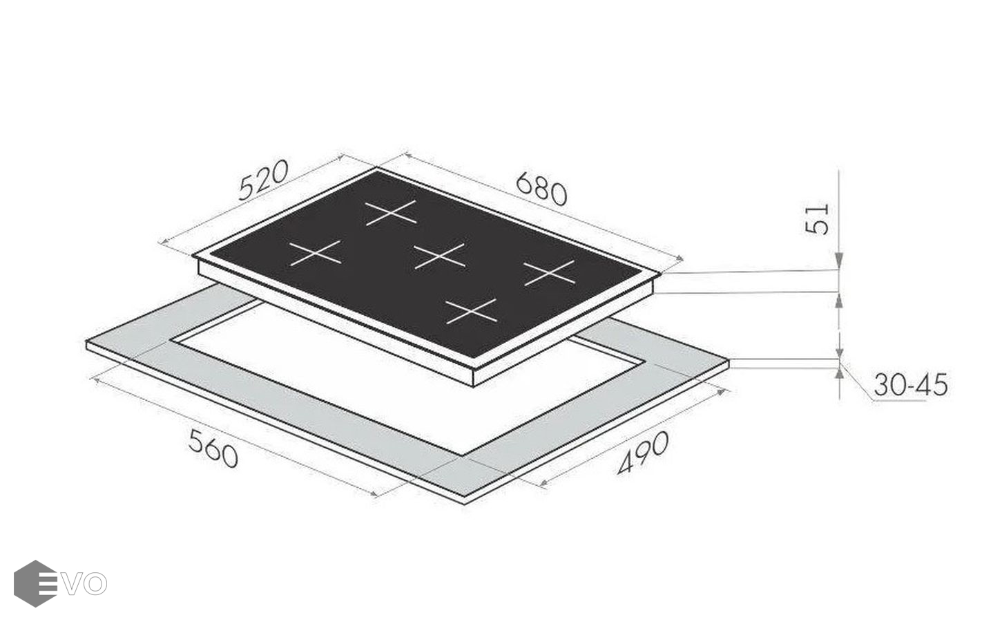 Размеры встраивания (ВхШхГ), мм: 30х560х490