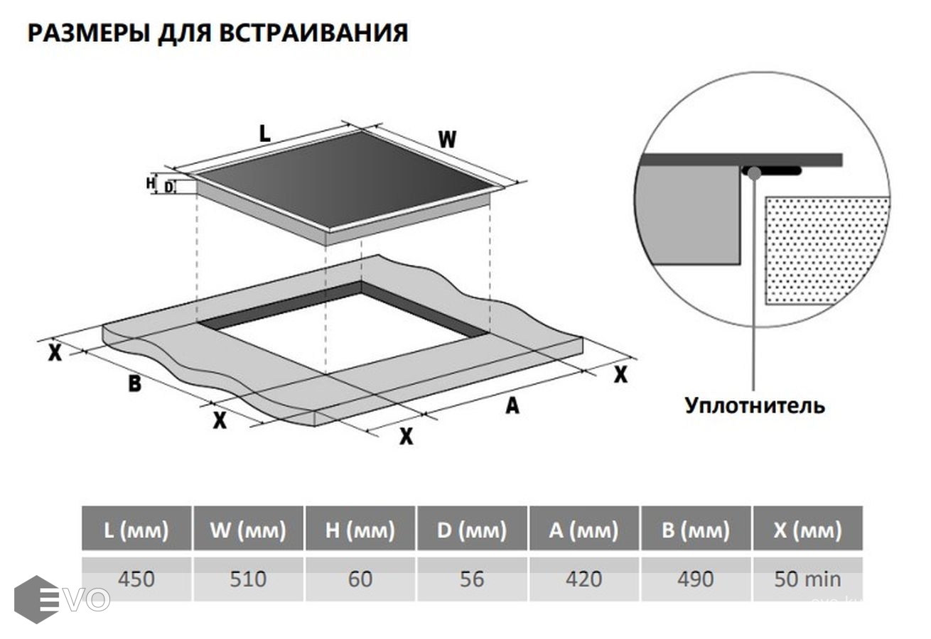 Размеры встраивания (ВхШхГ), мм: | 56х420х490 |