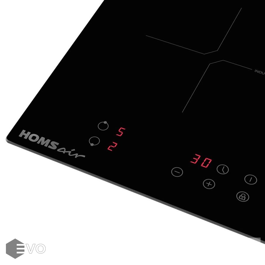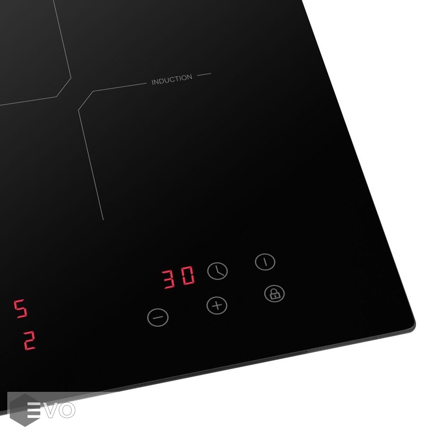 Функции: Индукционные конфорки Таймер конфорок Блокировка панели управления Защитное отключение конфорок Индикатор остаточного тепла