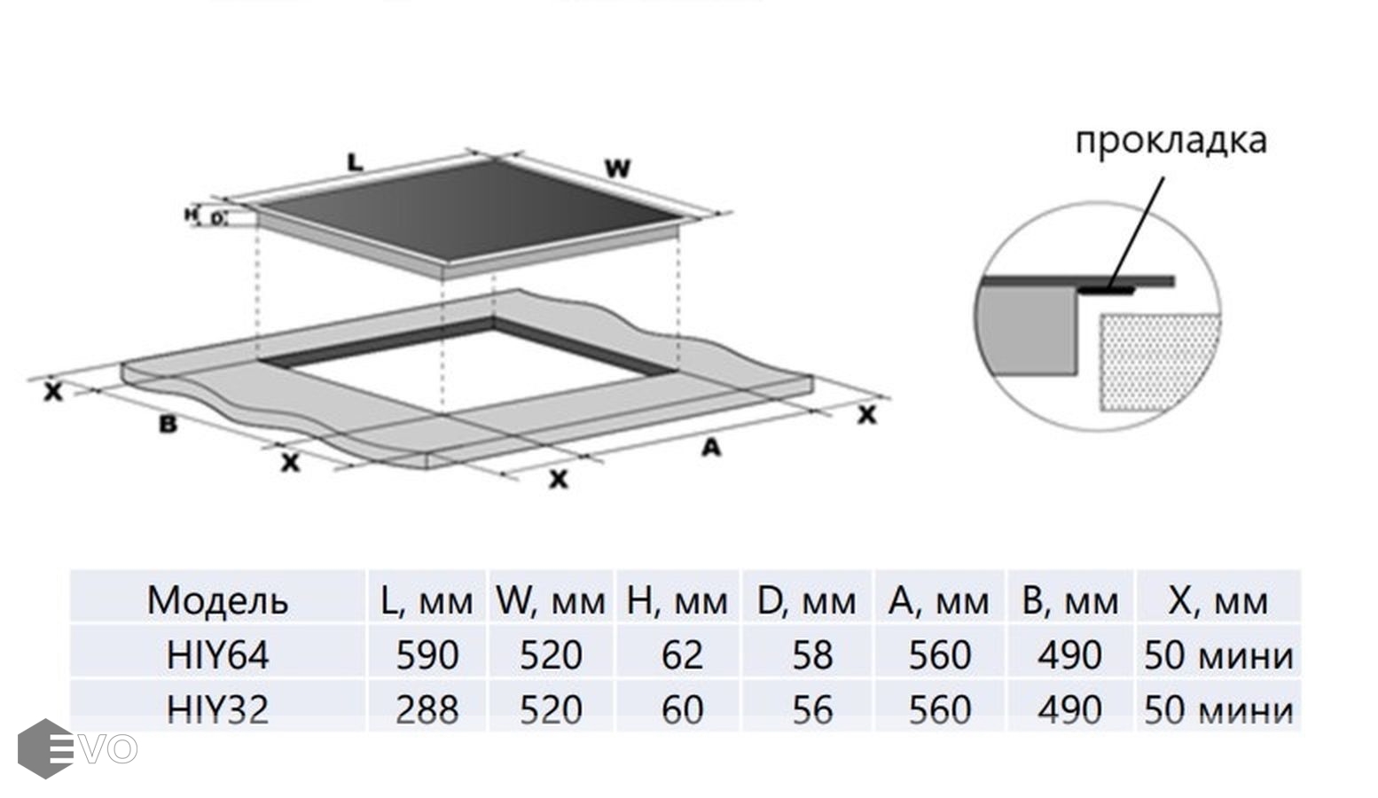 Размеры встраивания (ВхШхГ), мм: 56х560х490