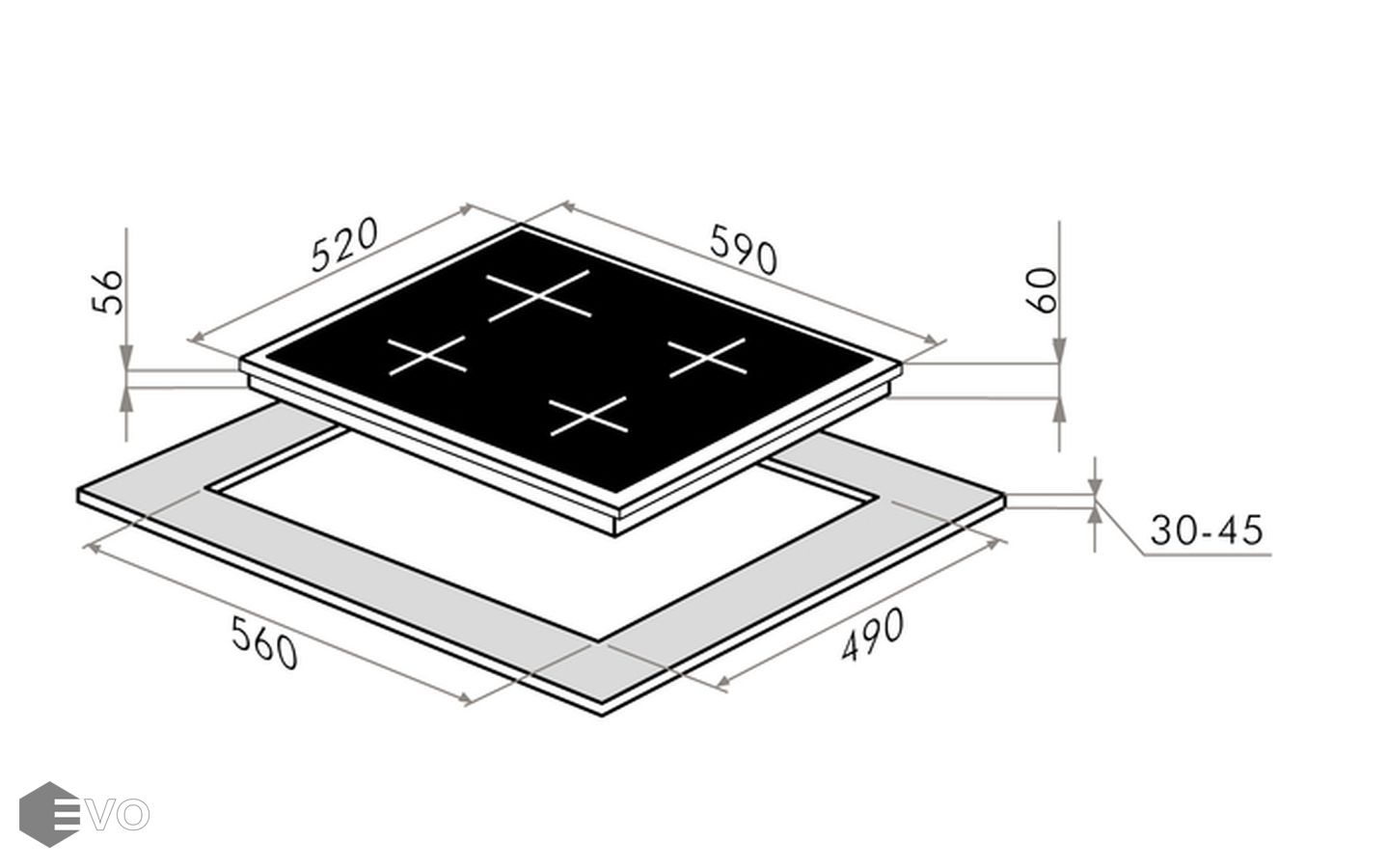 Размеры встраивания (ВхШхГ), мм: 30х560х790