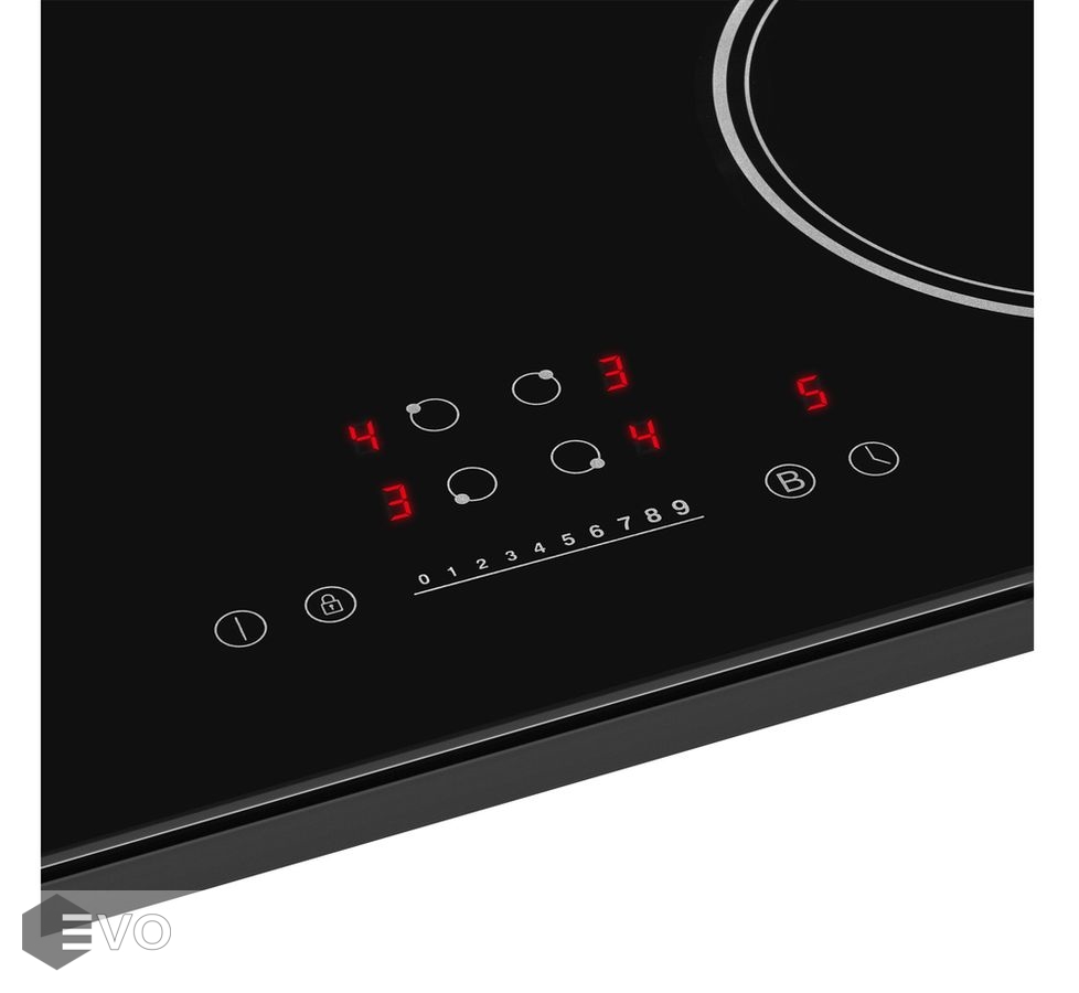 Функции: Индукционные конфорки Таймер конфорок Блокировка панели управления Защитное отключение конфорок Индикатор остаточного тепла Распознавание наличия посуды