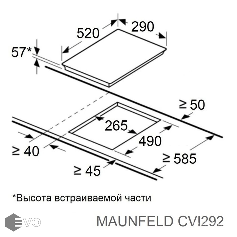 Размеры встраивания (ВхШхГ), мм: | 61х290х520 мм |