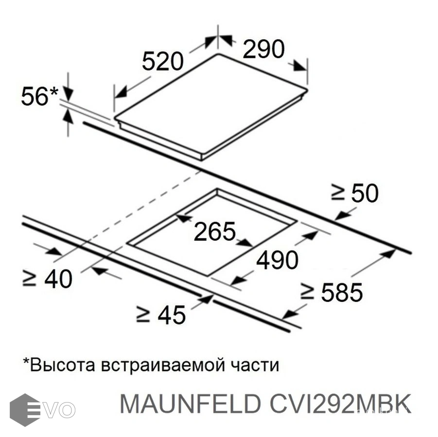 Размеры встраивания (ВхШхГ), мм: | 50х265х490 |