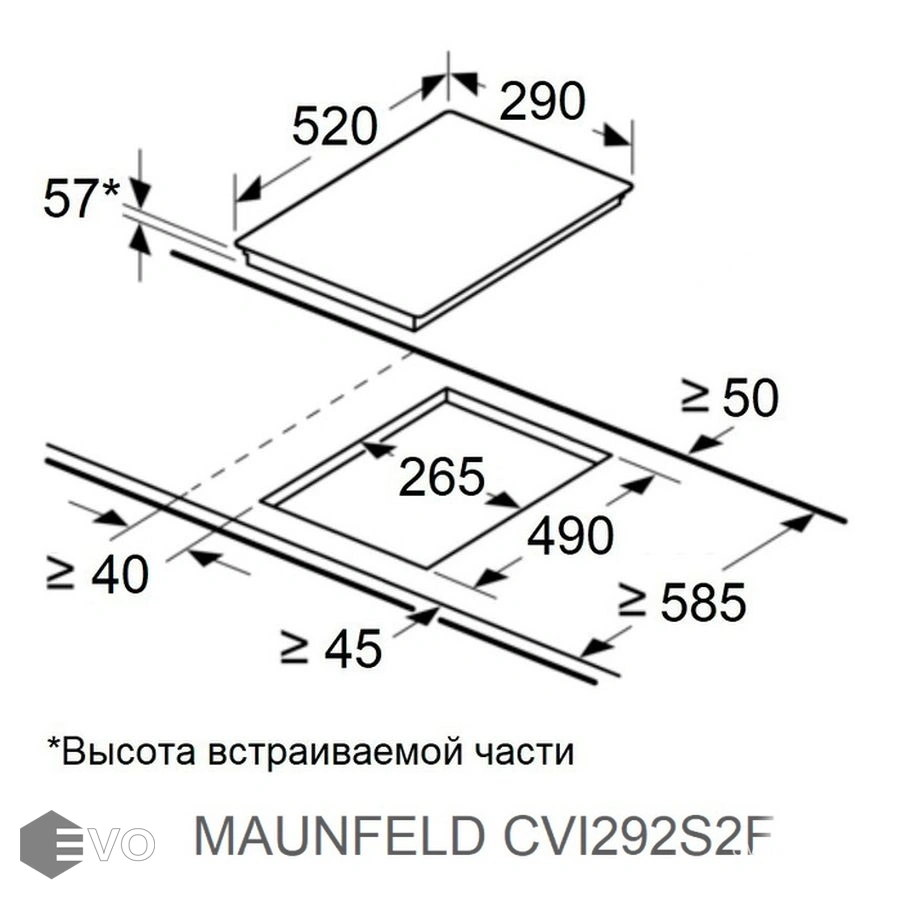 | Размеры встраивания (ВхШхГ), мм: | 50х265х490 |