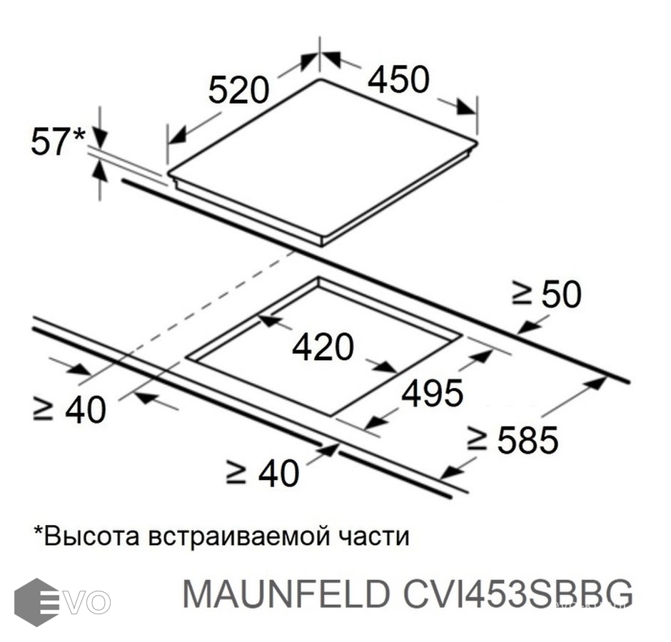| Размеры встраивания (ВхШхГ), мм: | 50х420х495 |