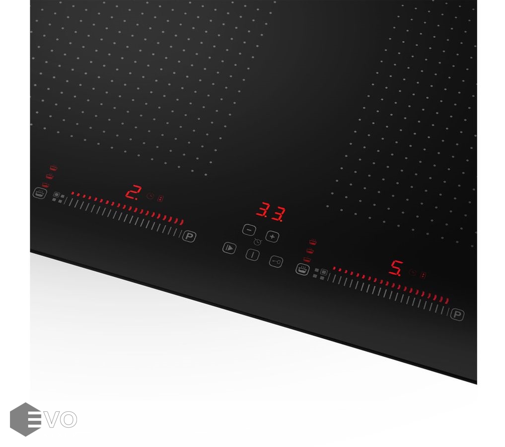 Функции: Индукционные конфорки Таймер конфорок Блокировка панели управления Защитное отключение конфорок Индикатор остаточного тепла Распознавание наличия посуды