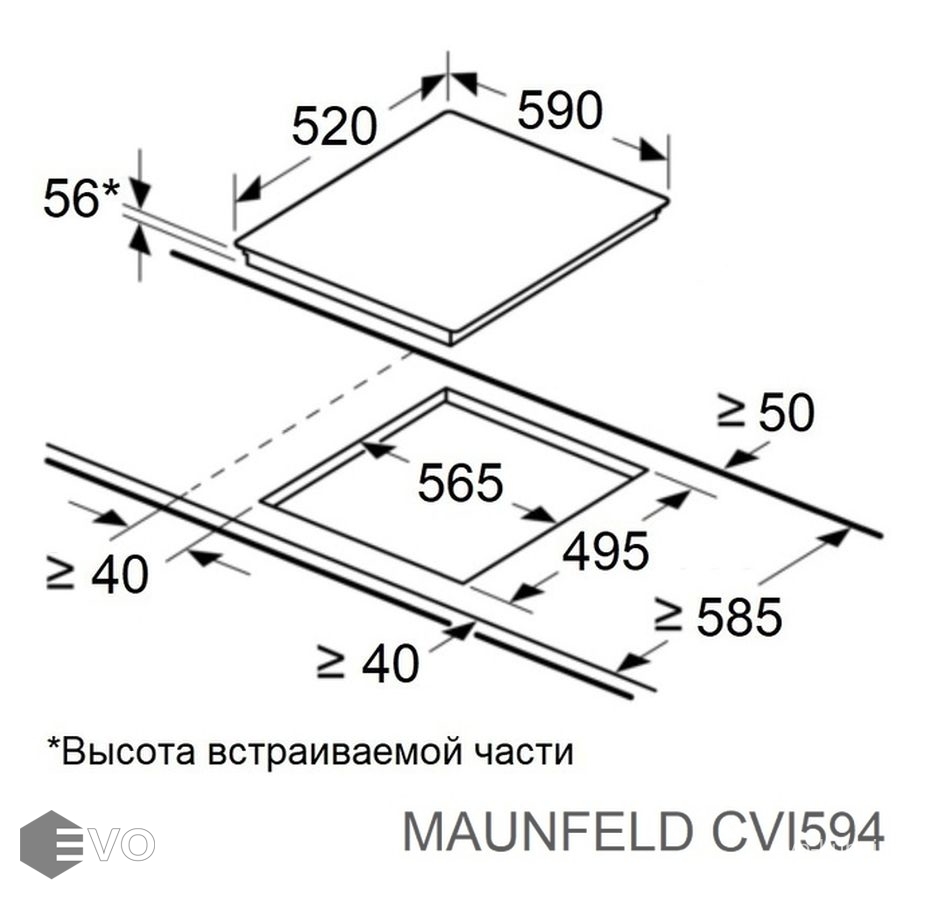 Размеры встраивания (ВхШхГ), мм: | 60х590х520 мм |