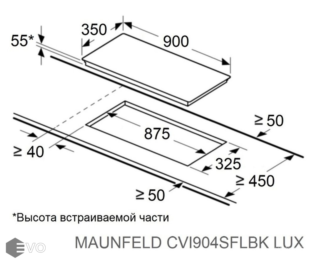 Размеры встраивания (ВхШхГ), мм: | 60х900х350 мм |