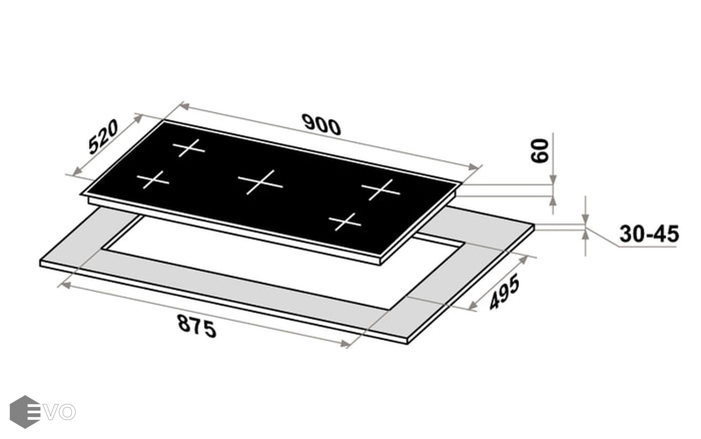 Размеры встраивания (ВхШхГ), мм: | 30х875х495 |