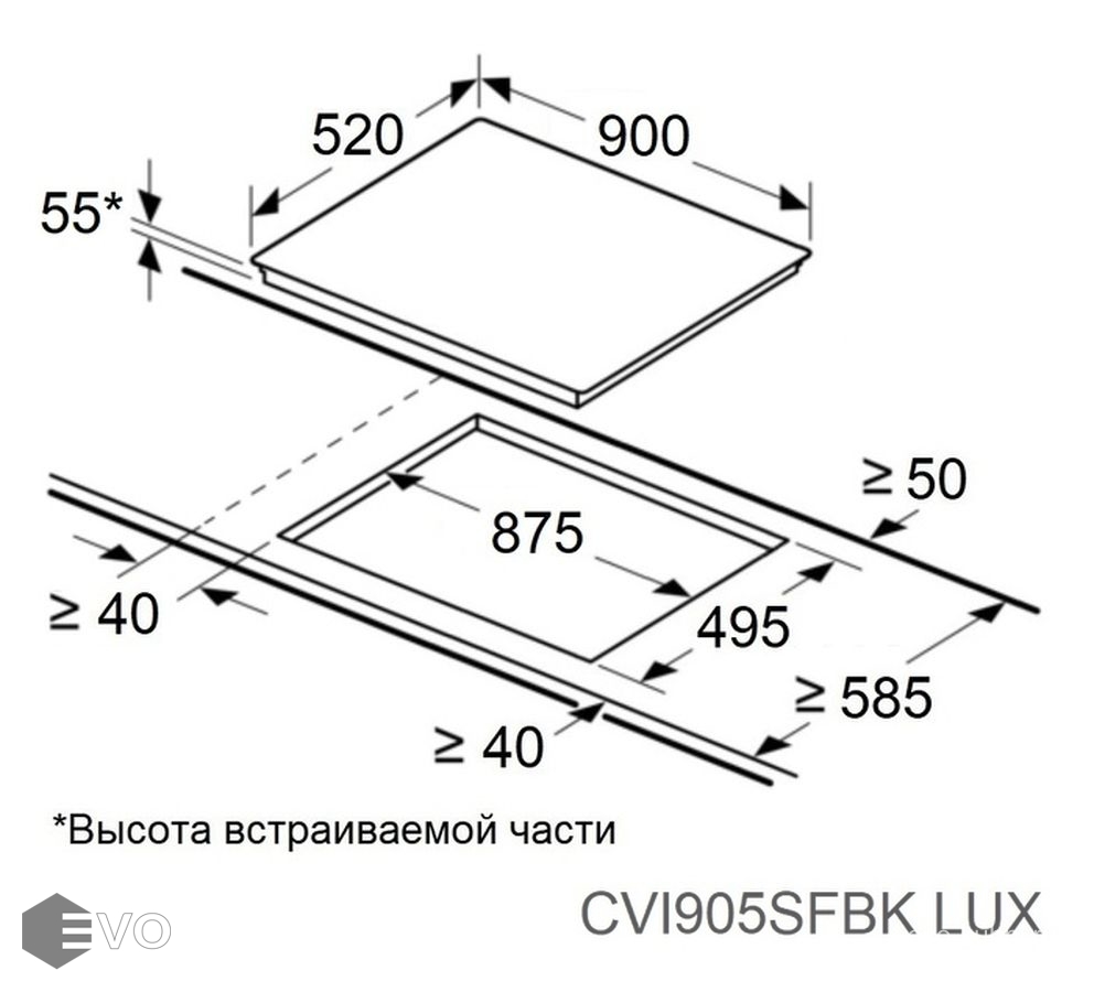 Размеры встраивания (ВхШхГ), мм: | 60х900х520 мм |