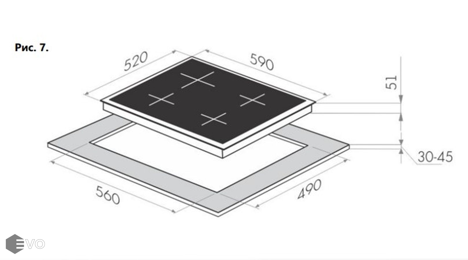 Размеры встраивания (ВхШхГ), мм: | 30х560х490 |