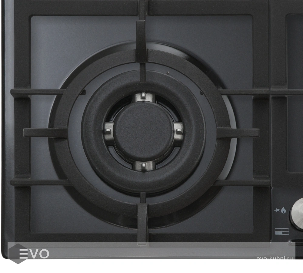 - Цвет поворотных переключателей конфорок: нержавеющая сталь