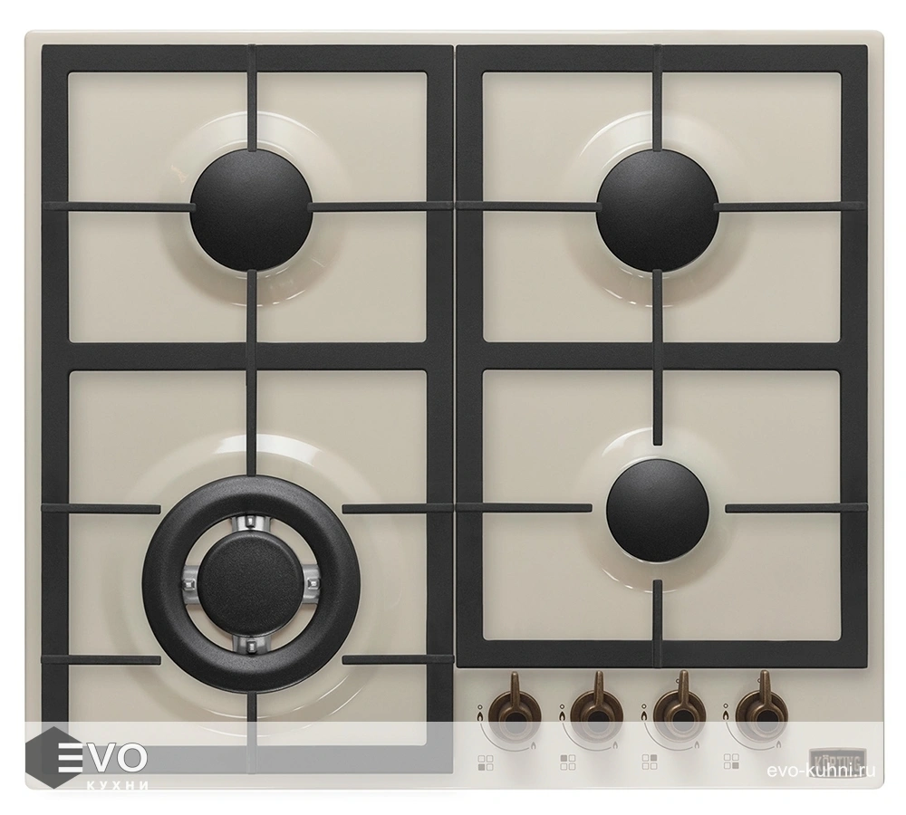 Газовая варочная панель Korting HG 665 CTRB – панель в стиле ретро, относится к коллекции «Calabria» и выполнена из эмалированного металла. Всего у модели 4 конфорок: 1 маленькая, 2 средних, WOK-горелка. Управление осуществляется при помощи поворотных регуляторов.