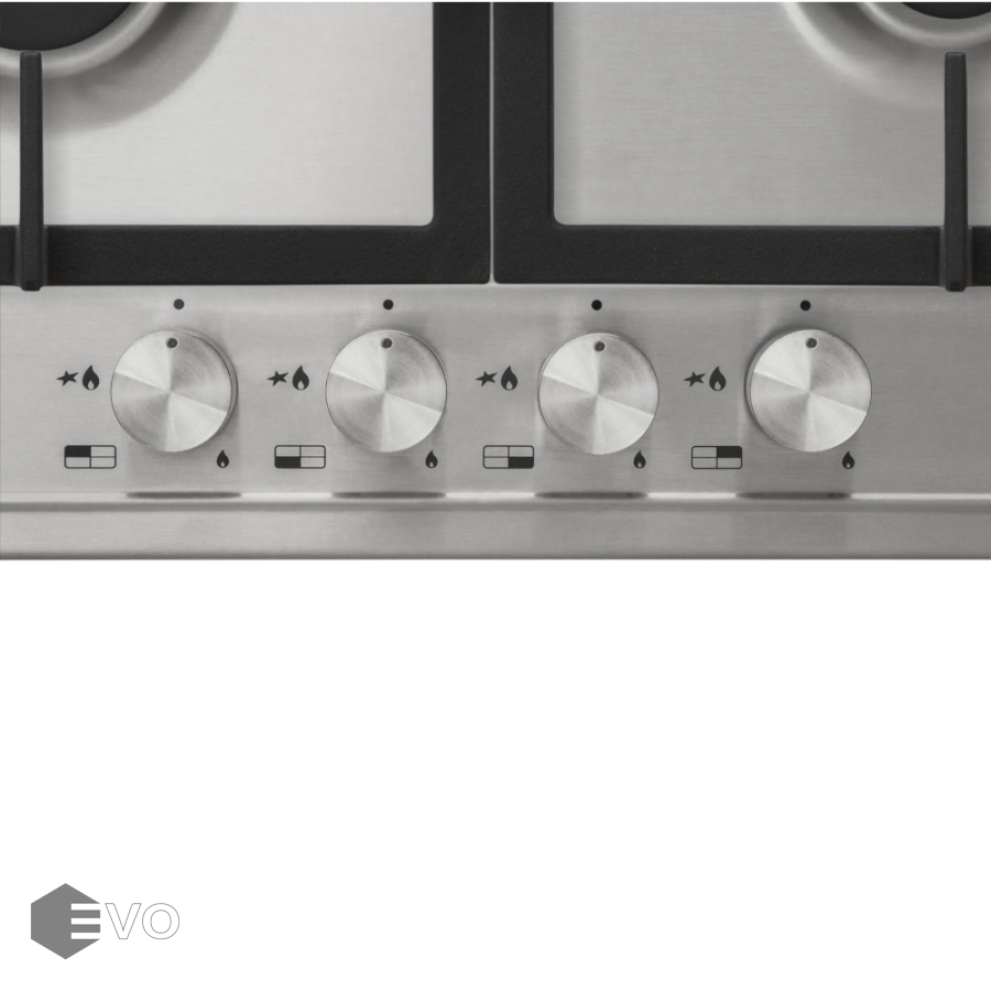 • Цвет поворотных переключателей конфорок: нержавеющая сталь