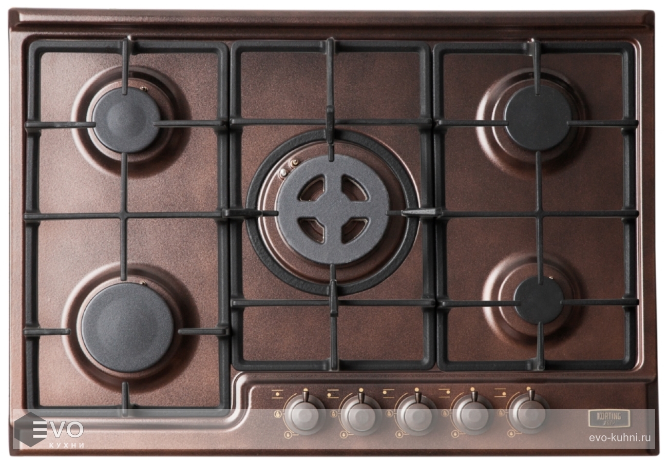 Газовая варочная панель Korting HG 7115 CTRC – газовая варочная поверхность в ретро стиле из эмалированного металла и предназначена для домашнего применения (приготовление и нагрев блюд). Установка возможна на различные жаростойкие материалы. Имеет пять конфорок с функцией автоматического электроподжига: 1 маленькая, 2 средние, 1 большая, 1 WOK. Управление осуществляется при помощи поворотных регуляторов.