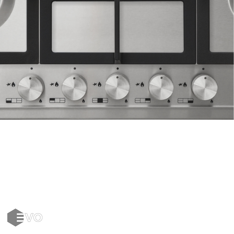 • Цвет поворотных переключателей конфорок: нержавеющая сталь