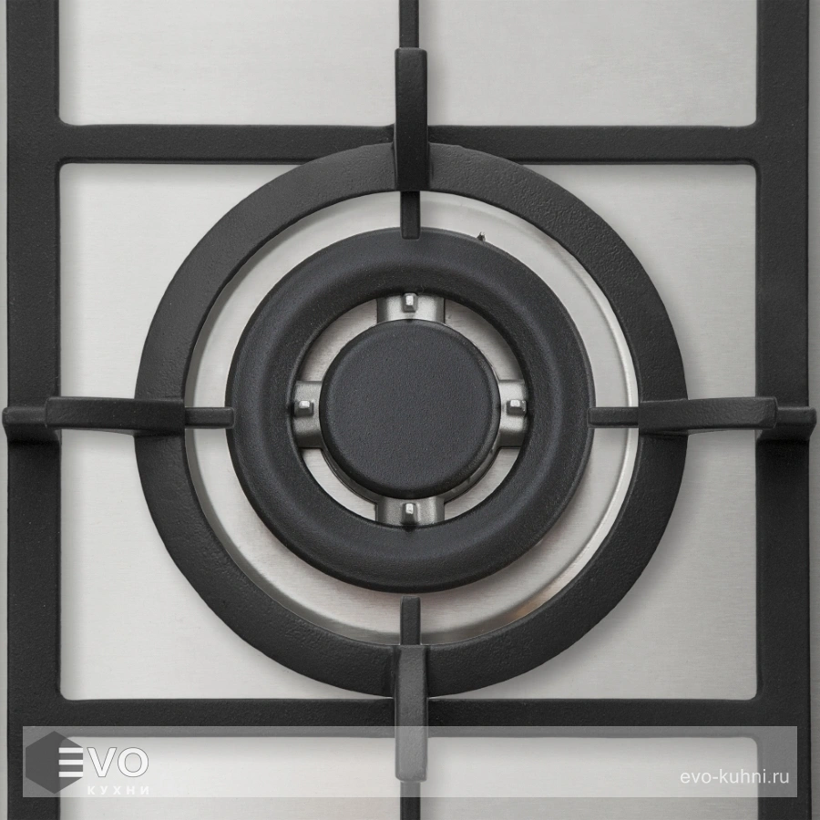 - Цвет поворотных переключателей конфорок: нержавеющая сталь