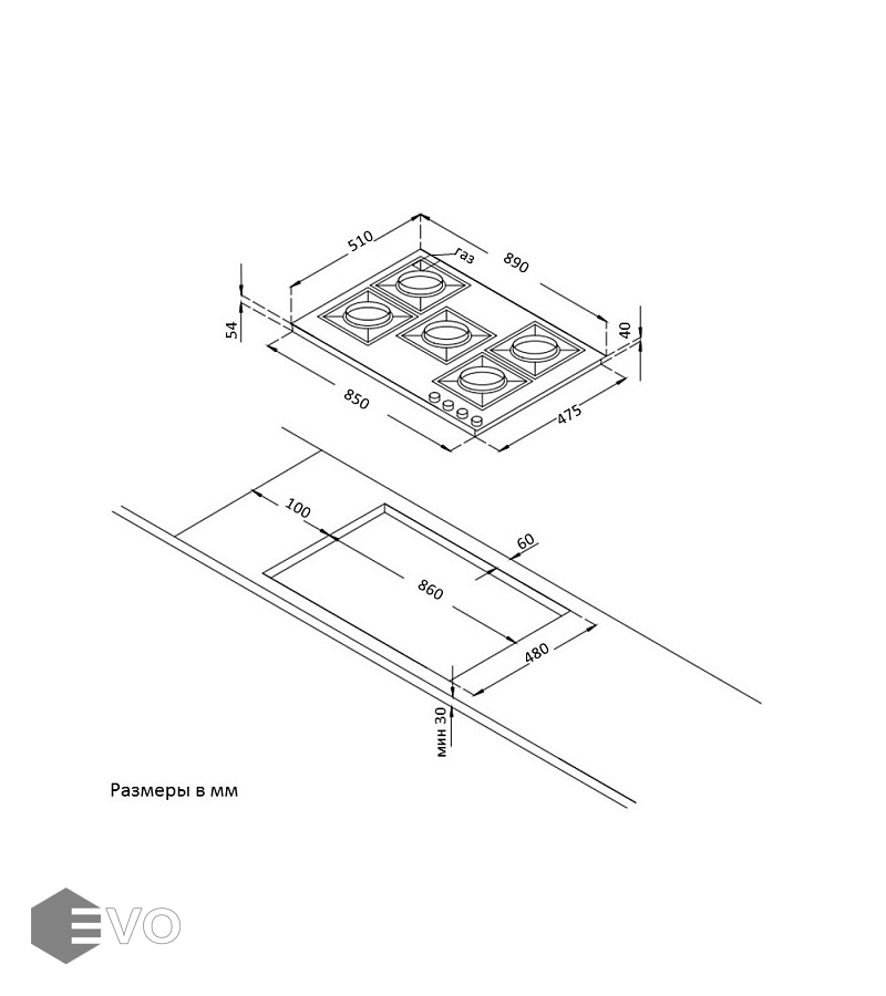 | Размеры встраивания (ВхШхГ), мм: | 30x860x480 |