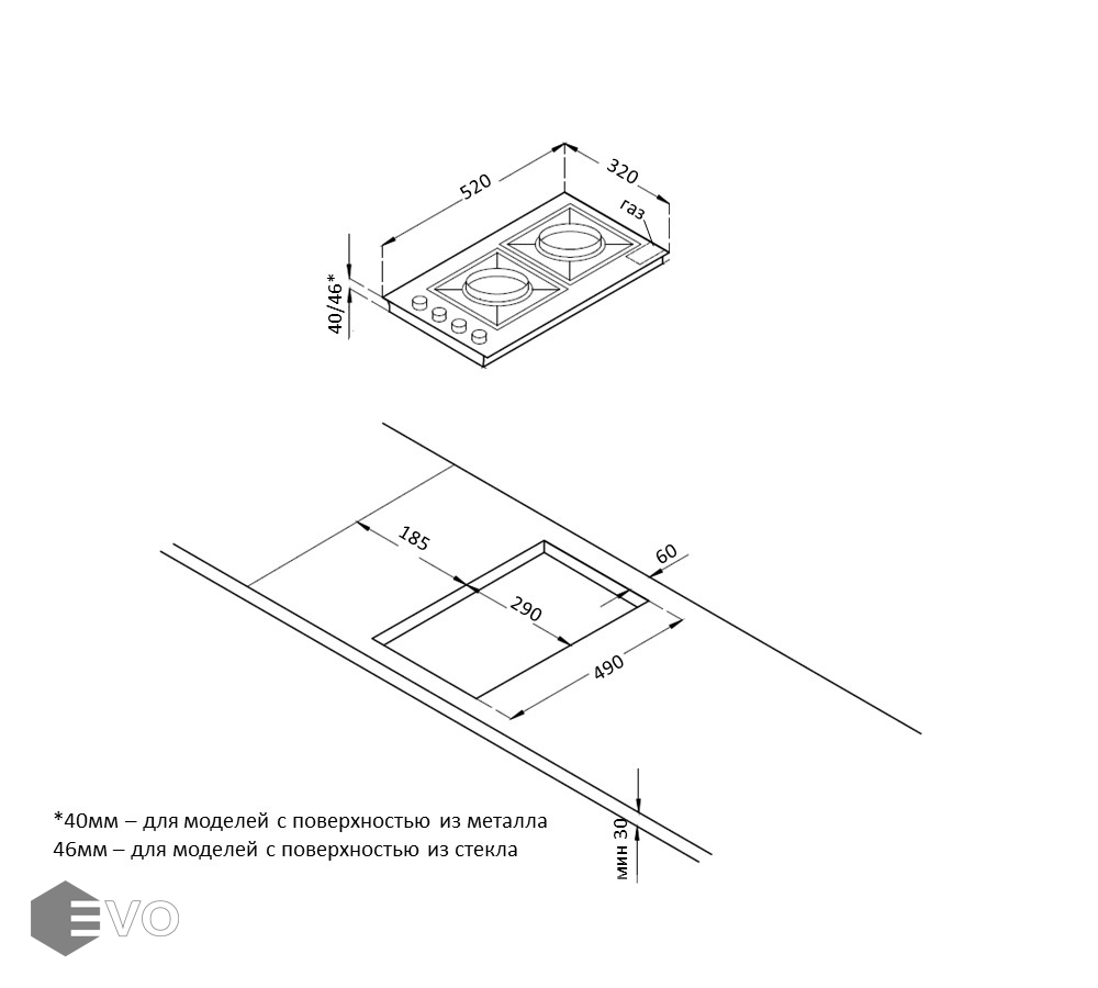 Размеры встраивания (ВхШхГ), мм: | 30x290х490 |