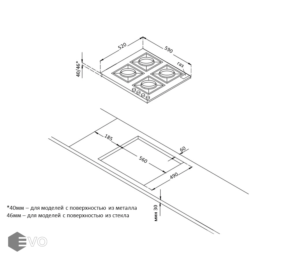 Размеры встраивания (ВхШхГ), мм: | 30x560х490 |