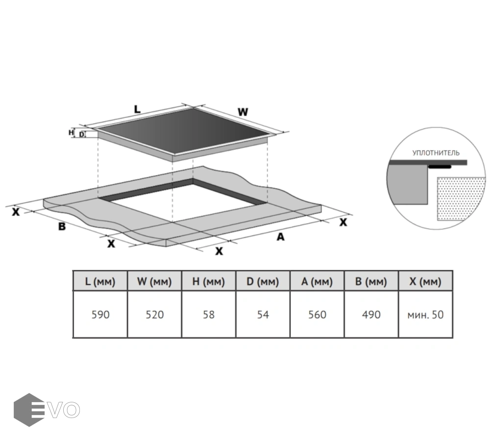 | Размеры встраивания (ВхШхГ), мм: | 30x560х490 |