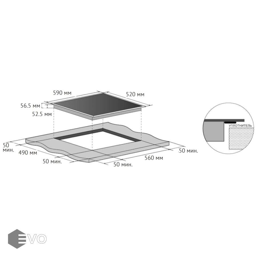 • Габариты (ВхШхГ), мм: 56.5х590х520