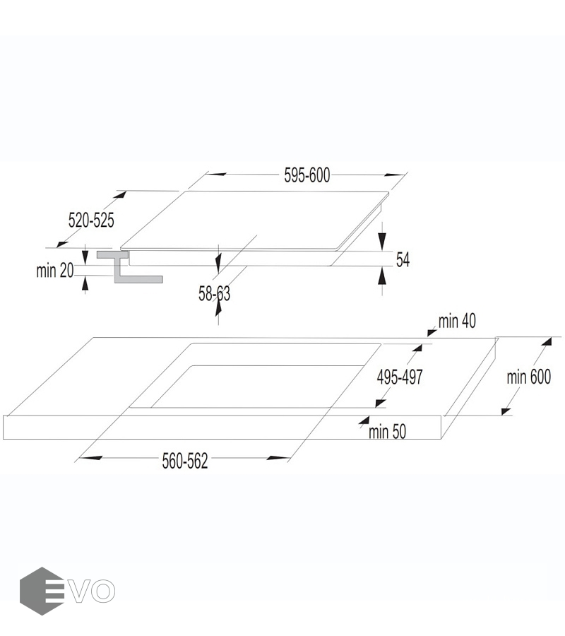 | Размеры встраивания (ВхШхГ), мм: | 30x560x495 |