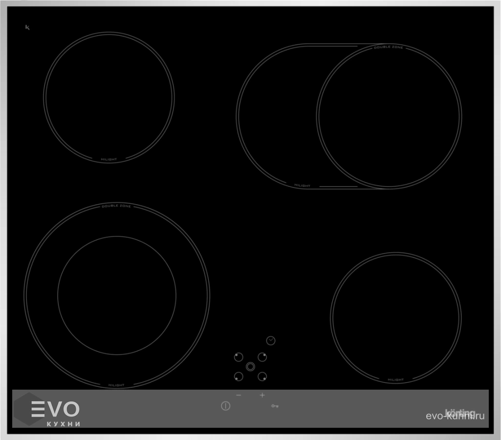 Электрическая HiLight варочная панель Korting HK 62051 X — выполнена из черной стеклокерамики с рамкой из нержавеющей стали. Особенность модели — в наличии конфорок с двухконтурной и овальной зонами расширения, что позволяет готовить в посуде разного размера. При помощи сенсорной панели Touch Control легко регулировать нагрев.